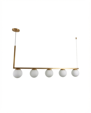 • Lustre Pendente Haste Angular 5 Bolas Globo Dourado 120cm 370
