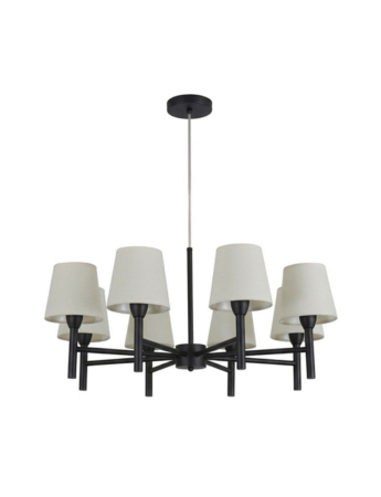 • Lustre Pendente Tocheiro Redondo Cúpula 08 Braços 75cm Preto 658/8