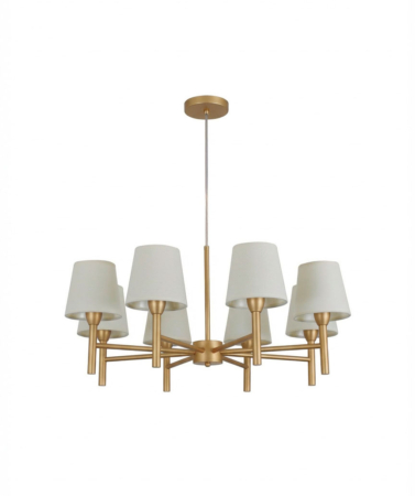 • Lustre Pendente Tocheiro Redondo Cúpula 08 Braços 75cm Dourado Fosco 658/8